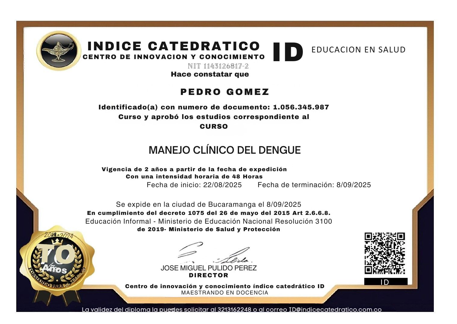 Certificado Valido por 2 años
